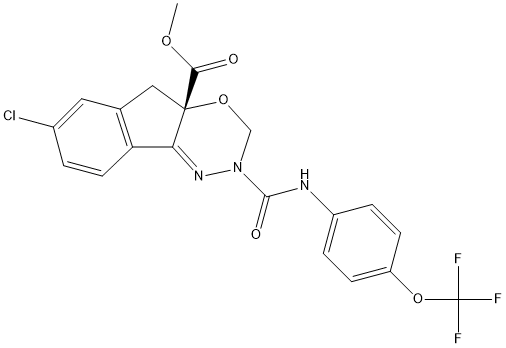 Chemical_Nomenclature : methyl (4aS)-7-chloro-2-[[4-(trifluoromethoxy)phenyl]carbamoyl]-3,5-dihydroindeno[1,2-e][1,3,4]oxadiazine-4a-carboxylate